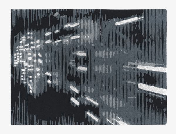 Sitting in the backseat in the car, racing down the highway and looking out the window, everything becomes a blur. White Verve captures that same energy and translates it on to the rug.