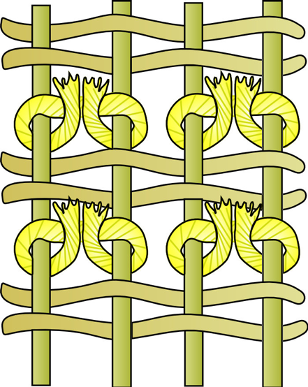 Hand-knotted rugs are made on wooden looms which are set up by creating a network of threads – the vertical threads are known as warp and the horizontal threads are known as weft. Individual strands of the yarn are tied into a knot around the warp. After each line, a comb is used to press the knots down and pack them tightly together. The weft holds the rug together. The fringe of the rug is made by leaving the ends of the warp loose. The entire rug is created in such a way by tying every knot manually. The speed and skill of the weaver determine how many knots he or she can tie in a minute. According to the design or geographic location, several different types of knots are used like the Turkish knot, Persian knot or the Oriental knot.