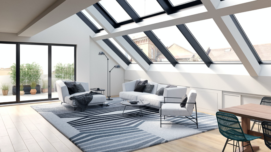 The Duna rug in shades of grey adds character to the room.